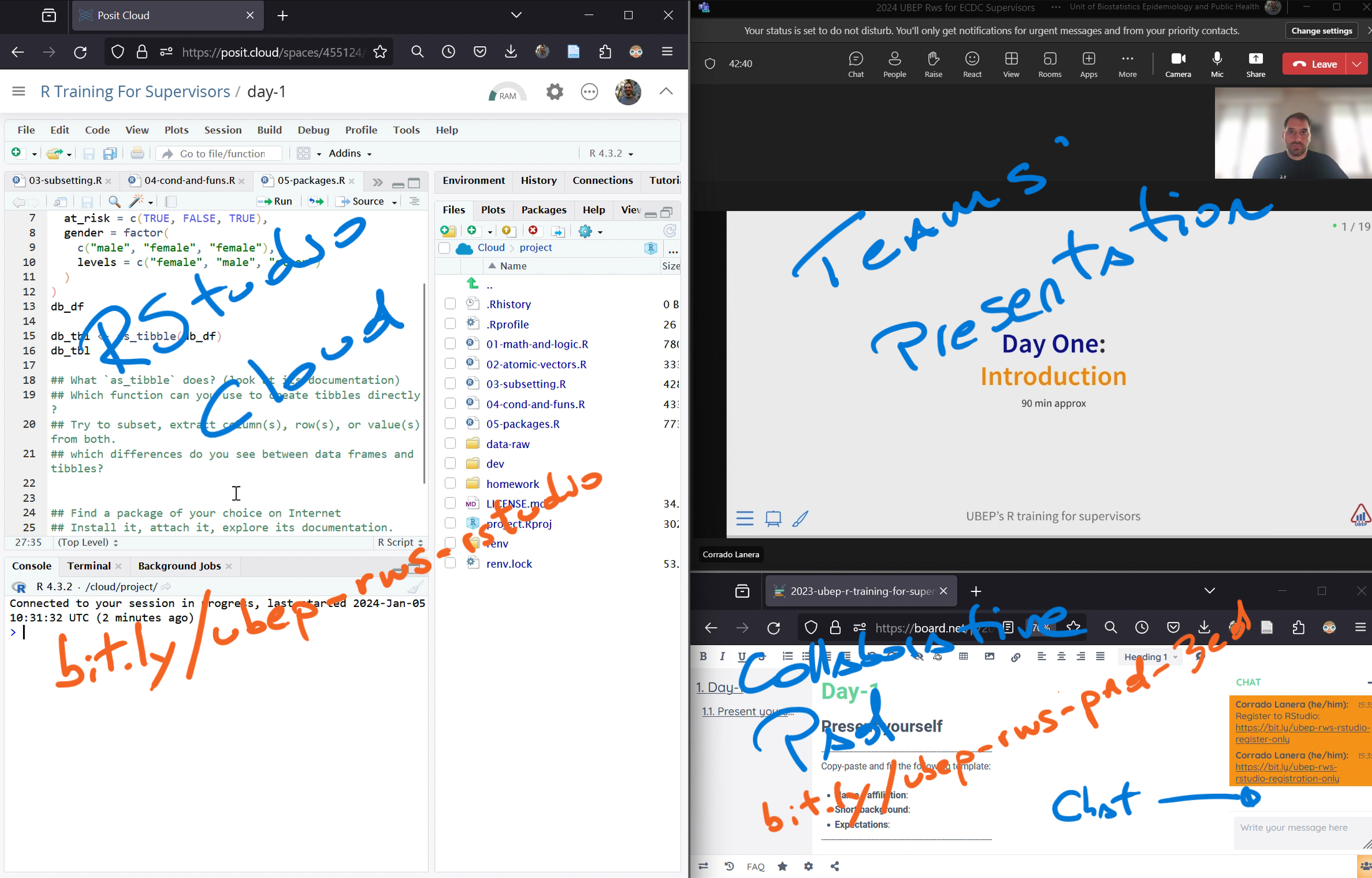 Rstudio Cloud Assistance: write on Teams chat, and a person from UBEP will contact you directly on a separate Teams meeting