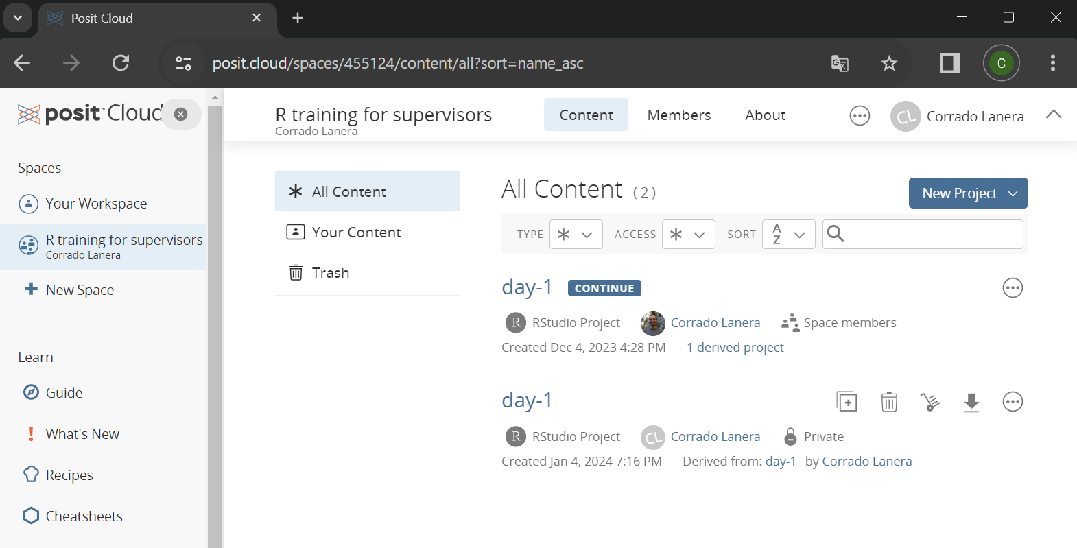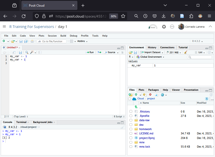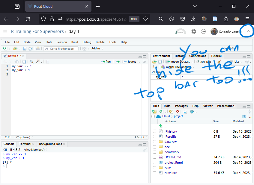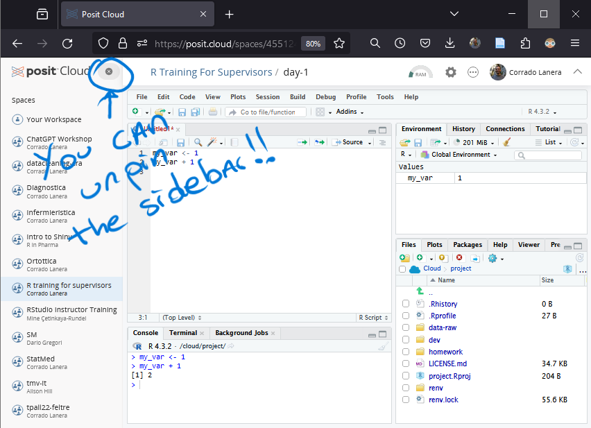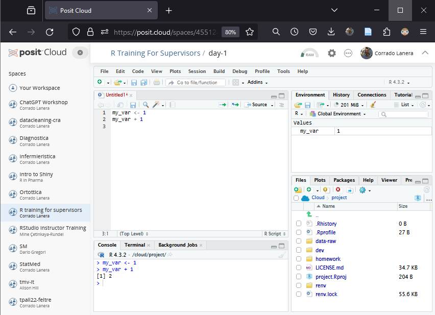Once you join the workspace, you can enter the R project provided for the day.