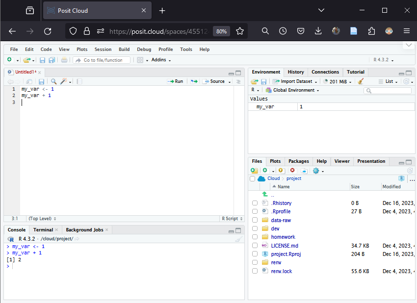 A fully functional RStudio IDE on the cloud.
